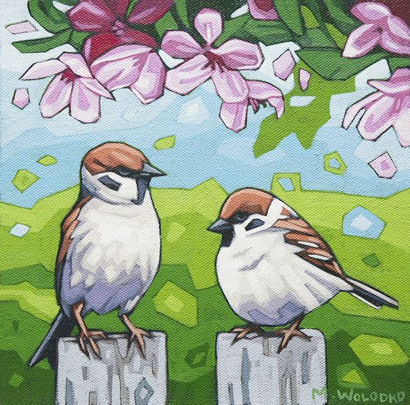 Sparrows Beneath the Flowers